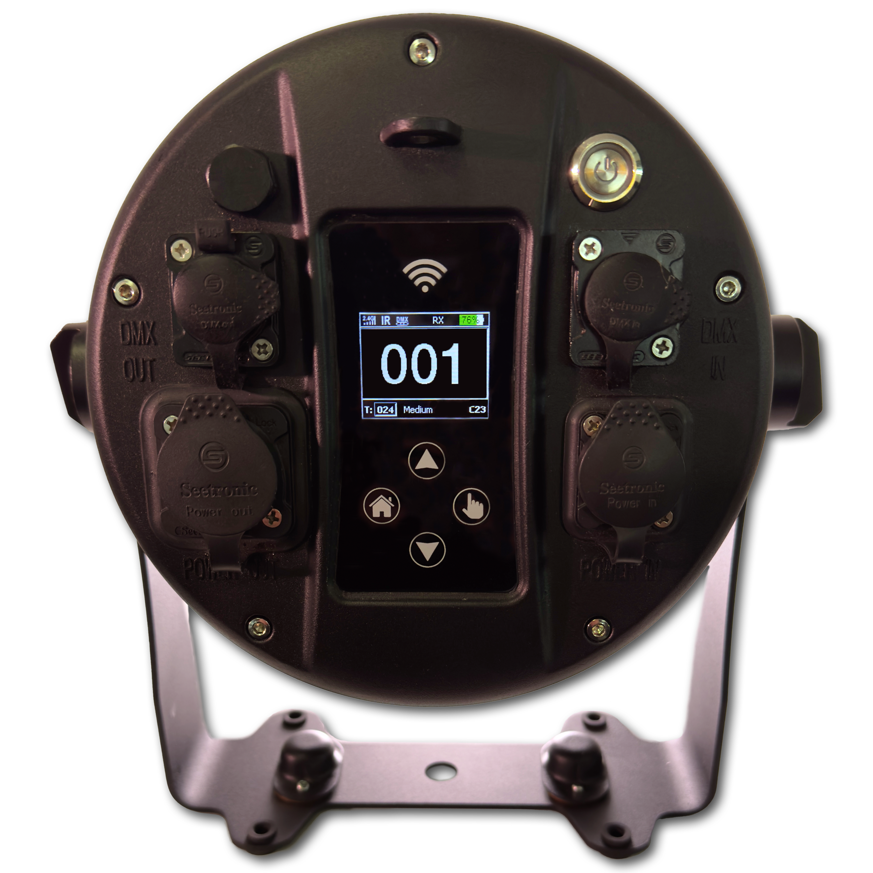 Ein integrierter EVE-Akku sorgt für eine Laufzeit von bis zu 26 Stunden. Das eingebaute G4S W-DMX-Modul ermöglicht eine kabellose Steuerung sämtlicher Funktionen. Zusätzlich lassen sich viele Parameter komfortabel per IR-Fernbedienung steuern inkl. DMX-Adressvergabe.