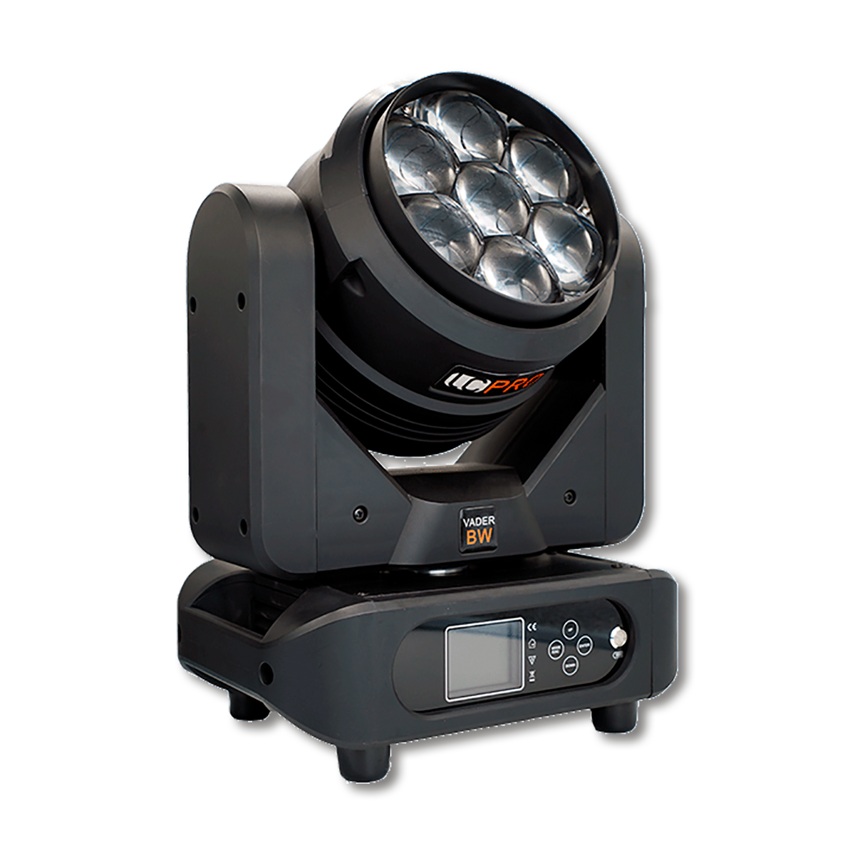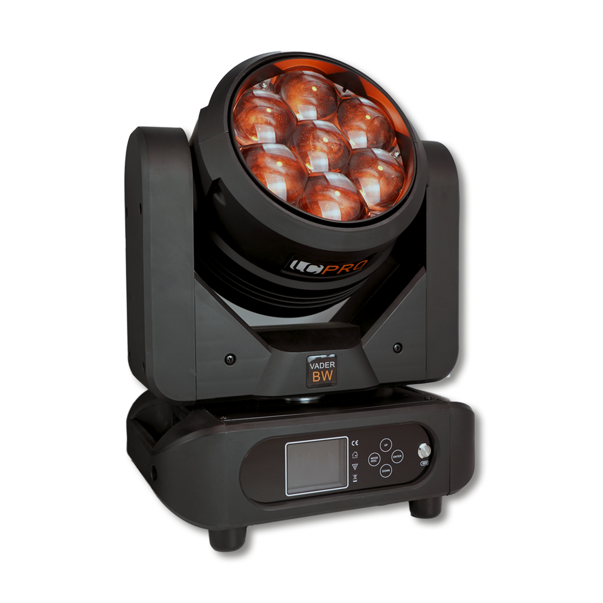 Der LCPRO Vader BW ist ein vielseitiger Movinghead, der sowohl als Beam- als auch als Wash-Licht eingesetzt werden kann. Ausgestattet mit einer 420W RGBW Osram LED Engine (7×60W) deckt er einen weiten Farbraum ab und ermöglicht eine variable Farbtemperatur von 2800K bis 8000K.